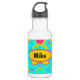 This water bottle has a fun, funky abstract pattern of ovals and circles in bright bright colours. This bottle can be customised by changing the name on the front of it.