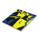 Bold And Stylish Abstract Art Minimalism Black Blue And Yellow Ceramic Tile to add to your home / office / business decor collection. A cool present / gift idea for all who love custom design unique items, positive vibes, art, geometry, psychedelic and organic theme etc. Change the background colour (blue) to suit your taste and style.