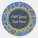 Funky Abstract Blue Floral Pattern Custom Text Classic Round Sticker