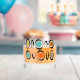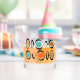 Add a pop of color to your kitchen or bar cart with this fantastic retro whiskey glass. It features abstract hanging geometric circles in the bright and bold colors of turquoise blue, two shades of orange, cream, tan, and black.