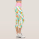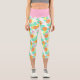 Fun cropped workout tights or Capri performance leggings for women. With classy, fun and contemporary aqua turquoise blue, mint green, orange, pink and yellow coloured abstract geometric triangles, polka dots and half circles mosaic pattern design on a white background. Stylish original and cool cover for the trend-savvy and art-loving hip trendsetter, trendy look style motif lover. Show off your unique and personal style when you work out at the gym, relax and exercise at yoga class, or are jogging or running. Look cute and hip while being active and staying fit while wearing these cool yoga pants!