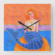 My funky abstract mermaid painting makes this lovely wall clock a colourful work of decorative art!
