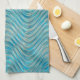 Funky Aqua Turquoise Blue Curved Lines Art Pattern Tea Towel