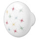 Liven up your drawers or cabinets with this fabulous atomic era starburst mid century ceramic knob. This design features starbursts in red, blue, green, and yellow and accented with black dots.