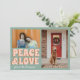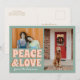 Funky Blue Pink Peace and love Photo Christmas Card