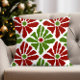 Funky Boho Christmas Poinsettia Flowers Red Green Cushion