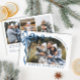 Funky Christmas Boho Blue Bow Ribbon 4 Photo Holiday Card