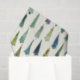 This design features artwork showing beautiful green Christmas trees. The original art was done with pen and watercolor paint. Many different Christmas trees are shown decorated with baubles, and they are coloured various shades of green, purple and blue. All of the trees have an bright star at the top, as is traditional. The design is an elegant celebration of the Christmas festivities.