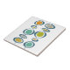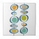This fabulous mid century modern decorative tile features two sets of funky abstract hanging circles in the colours of turquoise blue, orange, tan, avocado green, gold, and blue. This will make a colourful addition to your home decor!