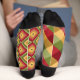 Fun funky mismatched odd socks. Bright trendy mismatched socks. Socks for women and men. Groovy trippy Christmas socks. Odd but matching crew socks for him and for her. Red yellow and green, stripes, square patterns.