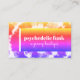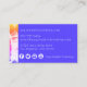 This business card has a funky psychedelic funk feel with a colourful tie dye background. The back features several social media icons that the colour can easily be updated in the design tool.