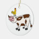 Funky Cow with Chicken on Her Head Cartoon Ceramic Tree Decoration