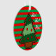 Funky festive tree ornament with green and red stripes and Christmas tree design. Option to customise with your own text/name. Same text/image on front and reverse.