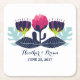 Modern and elegant Funky Floral Wedding Paper Coasters with a colourful array of lush dark blue and periwinkle foliage and stylised magenta pink and purple flowers. These stylish coasters can be customised with your wedding details. For more customisation options, click on the Customise It button.