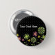 Funky flower border on black background with white 6 cm round badge