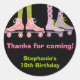 Girls in cute, funky skates of colourful patterns and polka dots are rolling on by in this bright and happy roller skating themed birthday party favour sticker.