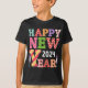 A funky and colourful text design says a happy new year. Perfect for a New Year celebration or New Year's eve party.