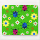 Funky ladybugs scuttling around amongst the flowers in the garden.