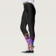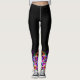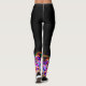 These are black leggings with colourful, bright designs at the bottom of the legs. Colours include red, orange, golf, green, blue, purple, pink, and black.