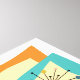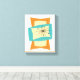 This funky mid century modern wrapped canvas features squeezed and outstretched rectangle shapes In turquoise blue, cream, and orange. Starburst accents in pink, blue, gold, and black highlight the design. Fab!