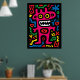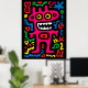 Bright, bold, and funky – this pink alien is a quirky monster full of neon energy. Surrounded by playful doodles and glowing shapes, it’s a must-have for pop art lovers and anyone who loves funky and colourful home decor.