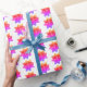 Funky Pink Purple Ombre Bows Pattern on White Wrapping Paper