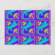 Funky Polka Dot Lizard Pattern Animal Designs with indigo blue, lime green, magenta pink purple, and teal blue. These unique neon polka dot lizards are bordered with a zigzag squiggly border.