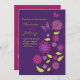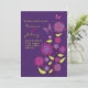 Bright and funky retro flowers are the focal point of this purple and green themed wedding invitation set.