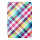 A large sized bath mat featuring a colourful plaid pattern design in rainbow colours.