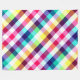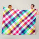 A large sized fleece blanket featuring a colourful plaid pattern design in rainbow colours.