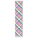 A 14”x72” table runner featuring a colourful plaid pattern design in rainbow colours.