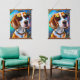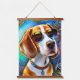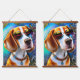 The ultimate in funky retro style, this pupper is sure to make a statement with their bold, colourful style! This playful pup is rocking a pair of oversized sunglasses with a bright pink frame, blue lenses, and purple and orange accents.
