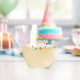 Bold and colorful retro bridal shower with flowers, rainbow, and peace sign