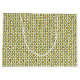 This large gift bag is embellished on back and front background with a retro seventies style pattern in olive green with bead-like oblong shapes set at intervals along straight vertical lines. All colours on each side may be edited in this special graphic for a custom look.
