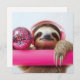 Funky Sloth with Pink Headphones and Disco Ball Holiday Card