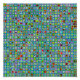 This product is made from a mostly turquoise textured mosaic square tiles pattern with bits of bright red and green dispersed throughout in a random arrangement. The many colourful concentric circles in this unique abstract design give it a funky, retro look.