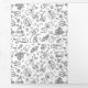 Unfold a whimsical love story across three playful panels. The centre features your main wedding invitation, surrounded by doodles like string lights, music notes, cake, champagne, rings, flowers, and more — all adding a joyful, laid-back vibe.