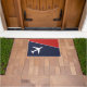 Funky And Stylish White Plane / Aeroplane / Planes Aviation Pilot Flying Door Mat to add to your collection. Red, white and blue background. A cool present / gift idea for all who love custom design personalised unique items, positive vibes, aviation, flying, sky, planes, aeroplanes, pilots, air transport theme etc. Baby shower, birthday etc. Boy, girl, fly, aircraft, wings, captain, jet, aeronautics, aerospace, meteorology, airborne, airline, airlines, airways, airport, circle.