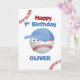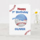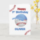 Celebrate the tiny slugger's first year with our adorable personalised baseball-themed card. Add the birthday child's name for a special touch. The animated letters and cheerful baseball face make it a winning choice. Inside, the heartfelt message says that the birthday child is a big hit with everyone!