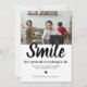 Funny 2021 christmas greeting card featuring a simple white background that can be changed to any colour, a precious family photo, the humourous saying "smile, let's pretend everything is ok", your seasons greetings, and names.