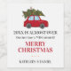 A great gift idea for your friends and family. A red car carrying a Christmas tree on the top of the label. "2025 is almost over" and One more time to WINE about it" and other custom text in classic typography.