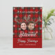 Make your holiday greetings unforgettable with this funny Christmas card featuring a bold red plaid background sprinkled with festive snowflakes. Add your own head cutout images for instant humor, then top it off with the included reindeer antlers for a delightfully ridiculous holiday look. Designed with playful script and clean modern typography, this sarcastic Christmas card is perfect for anyone who appreciates a little seasonal attitude. Whether you lean more “ho ho ho” or full-on bah humbug, this humor-filled design keeps the laughs coming all season long.
