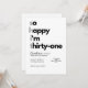 Celebrate turning 31 in style with this modern minimalist birthday invitation featuring bold typography and a clean, contemporary layout. The playful “so happy i’m thirty-one” design creates a fun yet sophisticated vibe—perfect for a stylish celebration.