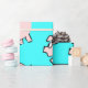 Funny cartoon illustration of a little pink pig smiling (illustration n°3) on transparent background. Design on wrapping paper with turquoise colour background. You can easily change background colour, size and position of the design by clicking the customise button. Available with other funny cartoon illustrations. Matching craft products, greeting card, clothing, home products, office products and more... Perfect for Chinese New Year of the Pig 201, new baby or Birthday (people born in Pig year).  -- "The Pig (豬) is the twelfth and the last sign of the Earthly Branches (亥). In the continuous Sexagenary cycle, every twelfth year corresponds to Hai, and is commonly called "the Year of the Pig" (豬年). There are five types of Pigs, named after the Chinese elements. In order, they are: Metal, Water, Wood, Fire, and Earth.