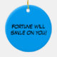 Funny cartoon illustration of a little pink pig smiling (illustration n°3) on transparent background with customisable texts: YEAR OF THE PIG and 2019. You can easily change text (font, size, colour and position) and background colour by clicking the customise button. Design on round ornament with blue background. and message in back. Available with other funny cartoon illustrations. Matching clothing, home products, office products and more... Perfect for Chinese New Year of the Pig 2019 or Birthday (people born in Pig year). ---- "The Pig (豬) is the twelfth and the last sign of the Earthly Branches (亥). In the continuous Sexagenary cycle, every twelfth year corresponds to Hai, and is commonly called "the Year of the Pig" (豬年). There are five types of Pigs, named after the Chinese elements. In order, they are: Metal, Water, Wood, Fire, and Earth.