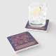 This funny Fourth of July stone drink coaster design is for men who love beer and blowing up fireworks. It says "Fireworks Expert: I Drink the Booze and Light the Fuse." It has a background picture of light blue stars and firework streaks and part of the text is on a firework image with a lit fuse. The background is dark blue.