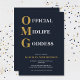 Celebrate your 50th birthday in style and with humour! On a navy blue background, the gold and white typography at the top reads "Official Midlife Goddess" with the OMG larger and in gold. Underneath, you can customise the typography with your own details. Unique and perfect for the big birthday celebrations!