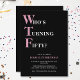 Celebrate your 50th birthday in style and with humour! On a black background, the light pink and white typography at the top reads "Who's Turning Fifty?" with the WTF larger and in pink. Underneath, you can customise the white and pink typography with your own details. Unique, cheeky and perfect for the big birthday celebrations!