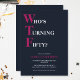 Celebrate your 50th birthday in style and with humour! On a navy blue background, the bold pink and white typography at the top reads "Who's Turning Fifty?" with the WTF larger and in pink. Underneath, you can customise the white and pink typography with your own details. Unique, cheeky and perfect for the big birthday celebrations!