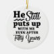 Celebrate a milestone wedding anniversary with this funny gift idea for wives that says ‘he still puts up with me!’